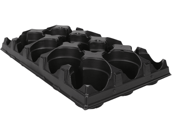 These trays are designed for carrying the round thermoformed pots.